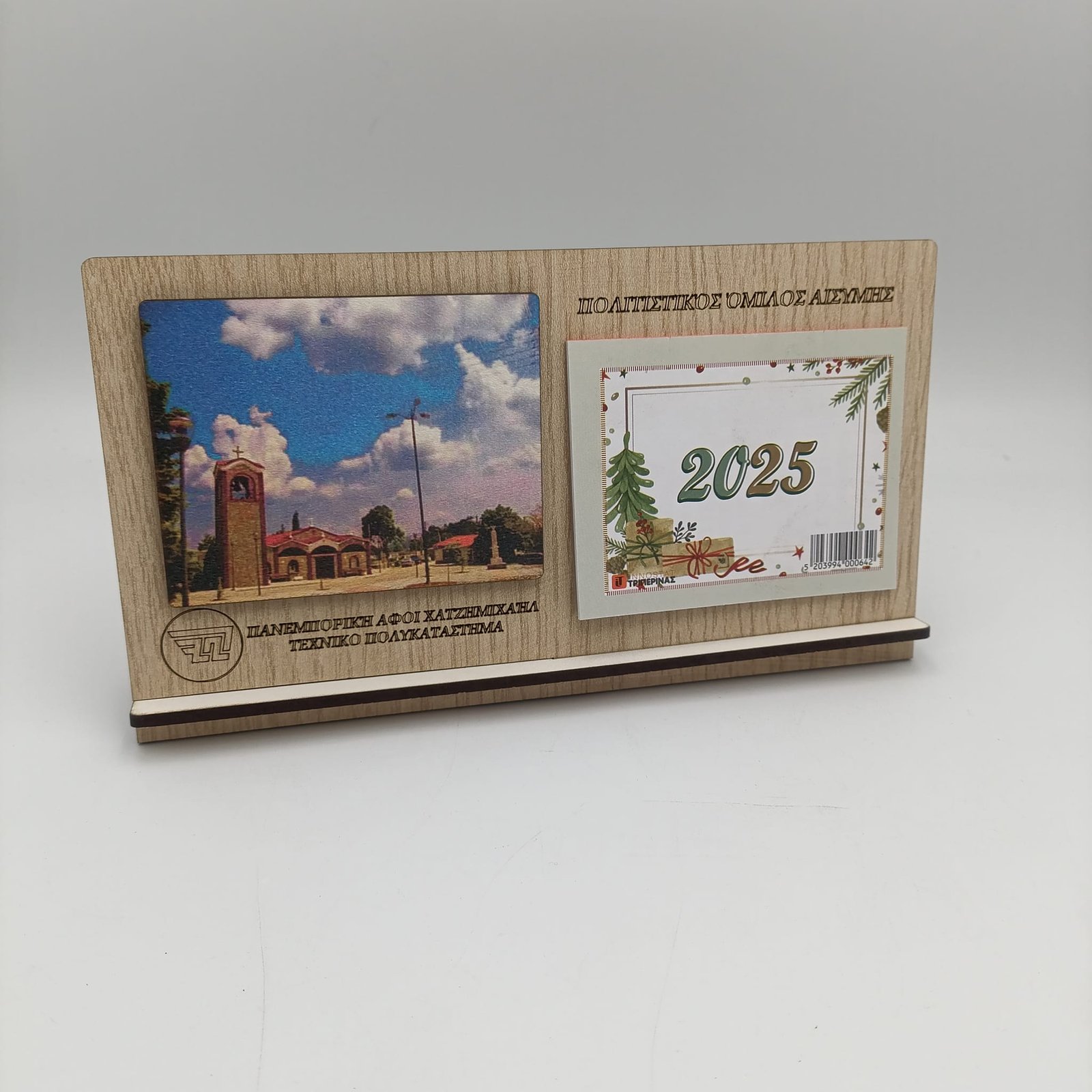 Επιτραπέζιο ημερολόγιο με ξύλινη φωτογραφία. Ελάχιστη παραγγελία τα 30 τεμ. Η τιμή αναφέρεται σε παραγγελία μέχρι τα 199 τεμ. στα 200-299 έχουμε έκπτωση 6% και 8% στα 300 τεμ και πάνω. τα μεταφορικά για αγορά 50€ και πάνω είναι δωρεάν σε περιοχές με box now.