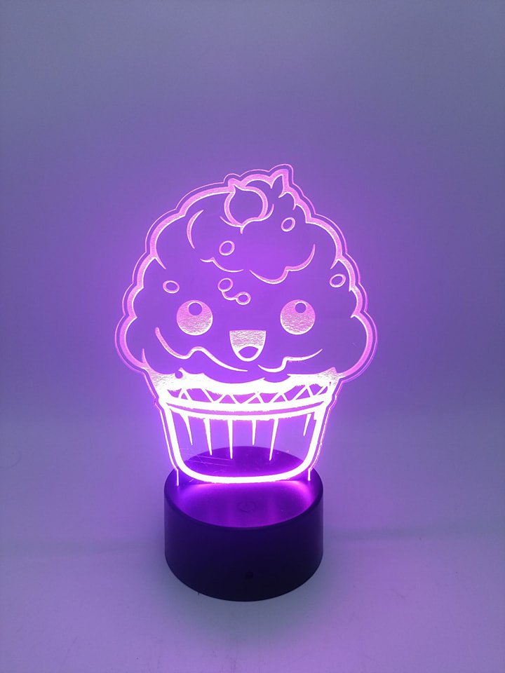Επιτραπέζιο φωτιστικό plexiglass με πλαστική βάση, cupcake με δυνατότητα χάραξης ονόματος. Υπάρχει δυνατότητα επιλογής 8 χρωμάτων. Στείλτε μας το σχέδιο που θέλετε, και εμείς θα σας το κάνουμε φωτιστικό με το όνομα και την αφιέρωση που επιθυμείτε. Σε μεγάλες παραγγελίες οι τιμές διαμορφώνονται ανάλογα. Επικοινωνήστε τηλεφωνικά.