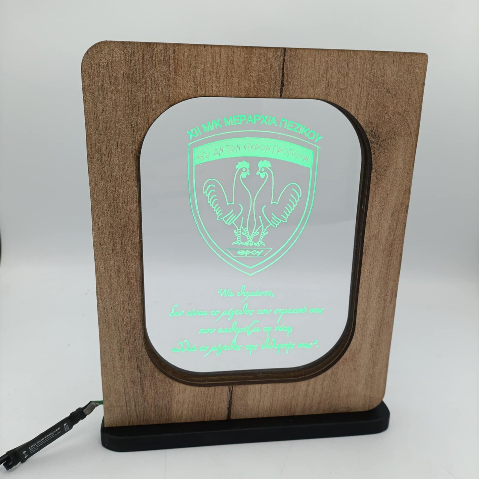 Φωτιζόμενη κορνίζα με το έμβλημα της μονάδας σας και αφιέρωση της επιλογής σας.