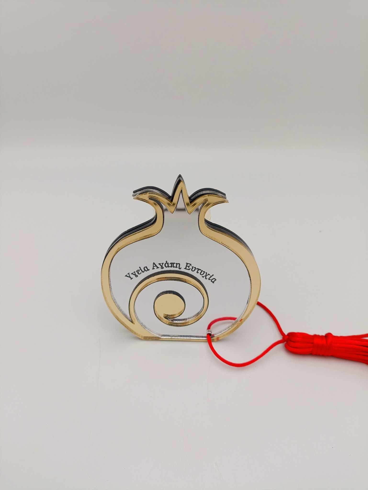 Γούρι ρόδι με σπείρα. Στην πλάτη γράφετε η ευχή σας ή ο το όνομα του συλλόγου σας. Το σχέδιο μπορεί να είναι με αντίστροφους τους χρωματισμούς .Η τιμή αφορά το ένα τεμ. σε μεγαλύτερες παραγγελίες η τιμή μειώνετε κατά πολύ. Διαστάσεις 8*7