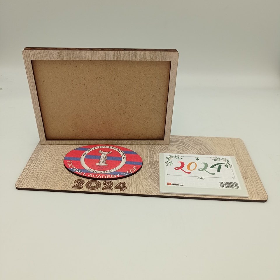 Επιτραπέζιο ημερολόγιο κορνίζα με βάση. Στείλτε μας το λογότυπο ή το σχέδιο που θα θέλατε να κοσμεί το ημερολόγιο, έγχρωμο ή μονόχρωμο. Ελάχιστη παραγγελία τα 30 τεμ. Η τιμή  αναφέρεται σε παραγγελία μέχρι τα 199 τεμ. στα 200-299 έχουμε έκπτωση 6% και 8% στα 300 τεμ και πάνω. τα μεταφορικά για αγορά 50€ και πάνω είναι δωρεάν σε περιοχές με box now.